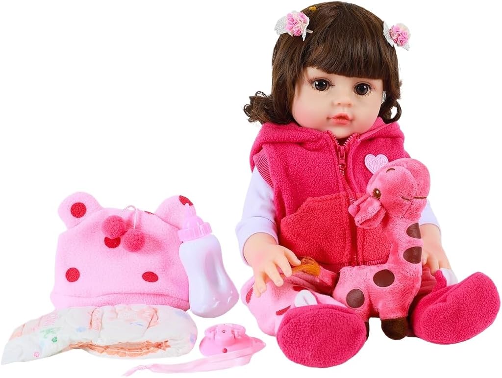 Boneca Bebê Reborn Ayla Toma Água e Faz Xixi – Lullaby A Reborn Baby Dolls Lullaby – Ayla é uma boneca incrivelmente realista e encantadora, tem 48 cm de altura aprox. e pesa cerca de 1,4 kg. Seu corpo é feito de Vinil/PVC de alta qualidade, proporcionando uma sensação suave e natural ao toque. Esta boneca vem acompanhada de acessórios, incluindo chupeta, mamadeira, fraldas, brinquedo de pelúcia (girafa), certidão de nascimento e elástico de cabelo. A Ayla não é apenas adorável, mas também interativa. Ela pode beber água e fazer xixi, proporcionando uma experiência ainda mais realista e divertida. Os membros da boneca são articuláveis, podem sentar-se e pode dar banho. As crianças podem brincar de cuidar da boneca, dando banho, trocando a fralda, dando de comer e colocando para dormir. A boneca também pode ser usada para brincar de casinha, com as crianças criando suas próprias histórias e aventuras. A Boneca Bebê Reborn Ayla é um brinquedo de qualidade que vai proporcionar horas de diversão para as crianças. A boneca vem embalada em uma caixa colorida individual com película shrink, perfeita para presente e para manter a boneca protegida e segura. Principais Características: – Idade Recomendada: A partir de 3 anos – Traços Delicados Igual de um Bebê de Verdade – Olhos castanhos brilhantes – Cabelos castanhos sedosos – Rosto fofo e expressivo – Altura: 48 cm aprox. – Peso: 1,4 kgs aprox. – Acessórios incluídos: Chupeta, Mamadeira, Fralda, Brinquedo de pelúcia (girafa), Certidão de nascimento e Elástico de cabelo – Funções interativas: Pode beber água e fazer xixi Especificações Técnicas: – Conteúdo da Embalagem: 01 Boneca + Acessórios – Material/ Composição: Corpo: Vinil/PVC de alta qualidade. Cabelo: Fibra – Dimensões: 48 x 25 x 15cm Aprox. – Peso Aprox.: 1,40 Kgs – Certificação: 005517/2024 – Garantia: 30 Dias (Contra defeitos de Fabricação pelo fabricante) – Referencia Fabricante: 21740 – EAN: 7899403217404 – Marca: LullaBy Imagens meramente ilustrativas, as cores e estampas podem variar de acordo com o lote do fabricante.