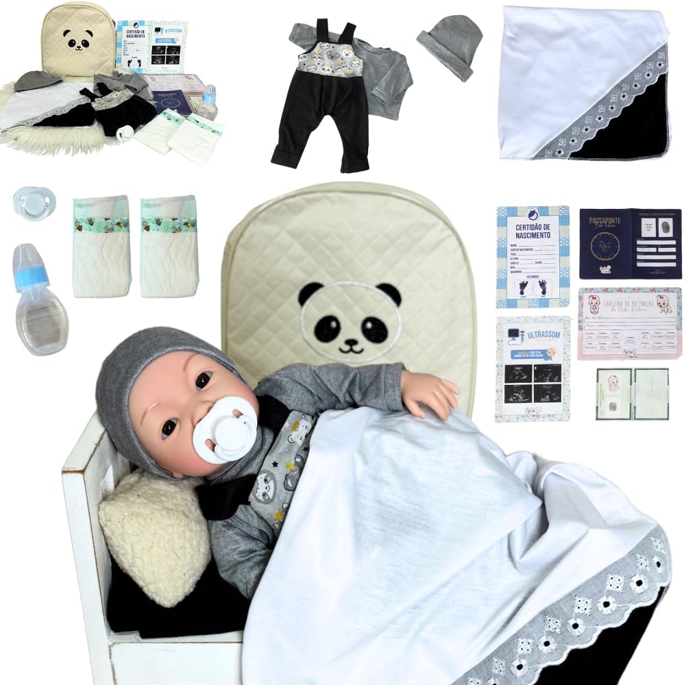 Boneca Bebê Reborn Menino Príncipe Com Acessórios + Mochila Panda