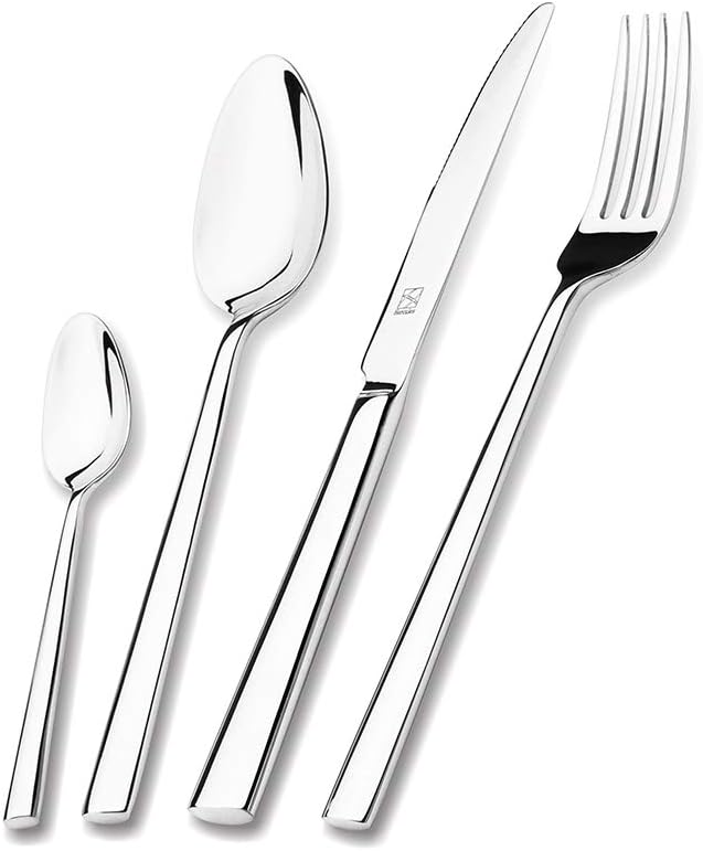 a linha mykonos oferece um faqueiro de 101 peças com design moderno e único para deixar a sua mesa completa e sofistiticada.