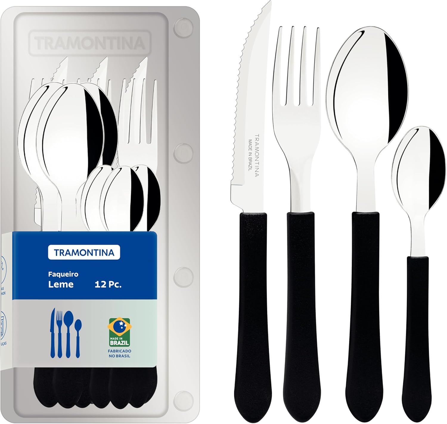Faqueiro Tramontina Leme com Lâminas em Aço Inox e Cabos de Polipropileno Preto 12 Peças