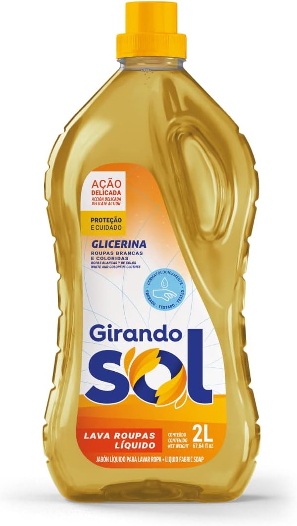 Girando Sol Lava Roupas Líquido Glicerina 2L Sabão Líquido Lava Roupa Perfumado Amarelo Ação Delicada Proteção E Cuidado Roupas Brancas E Coloridas
