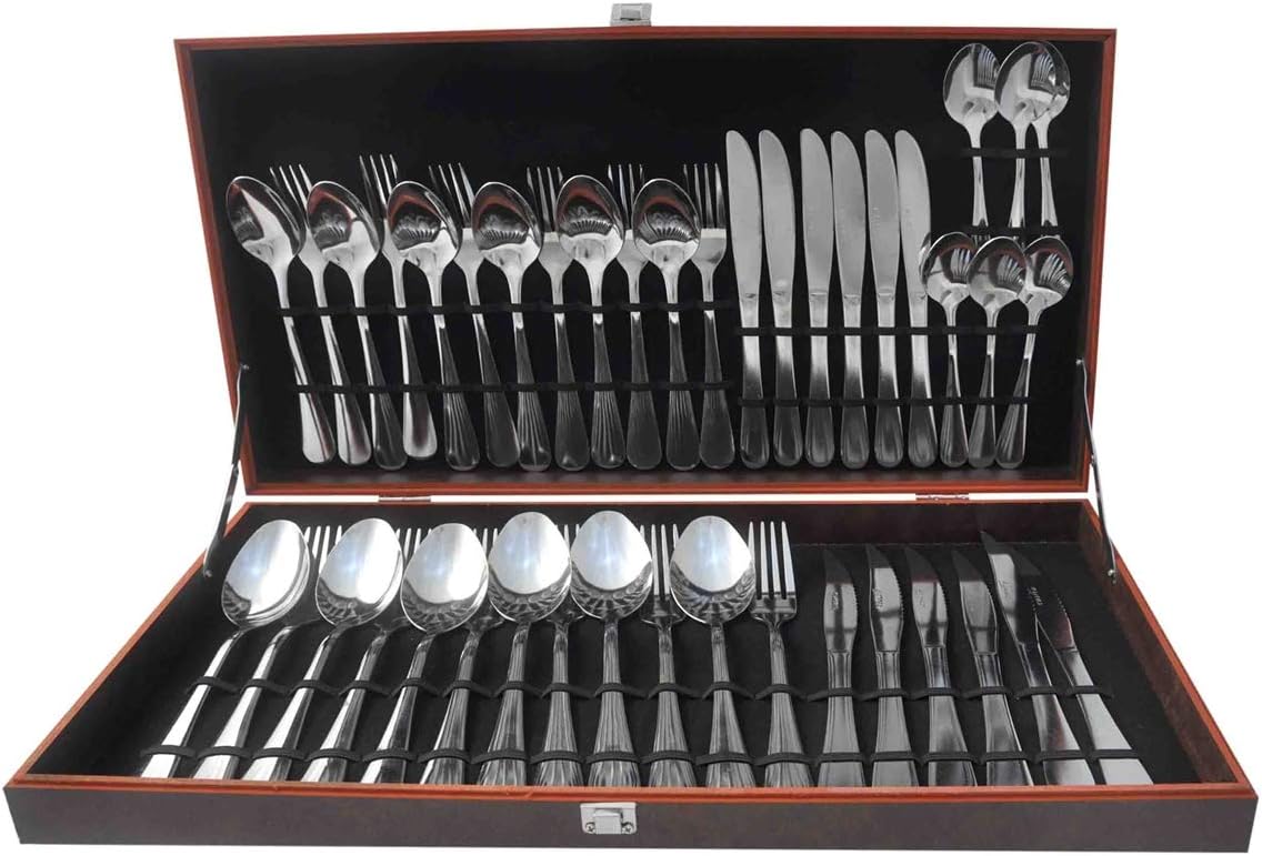 Jogo de Faqueiro Completo Inox Premium com Maleta de Madeira