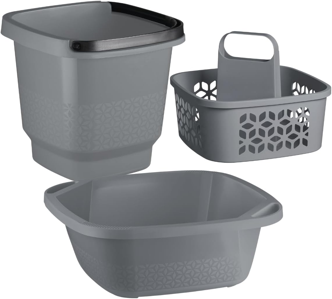 Kit Lavanderia Multiuso Balde 12L + Bacia 8,5L + Cesto Balaio Organizador Limpeza Casa Uz – Cinza
